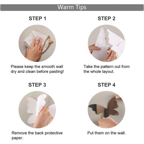 Facile à fixer grâce à son adhésif arrière, à enlever sans laisser de dommages ou de résidus, de sécurité et non toxique, adapté à l’espace familial.Idéal pour décorer la salle de bain, le salon, la toile de fond du téléviseur, la porte, le meuble, le couloir, le porche, etc.