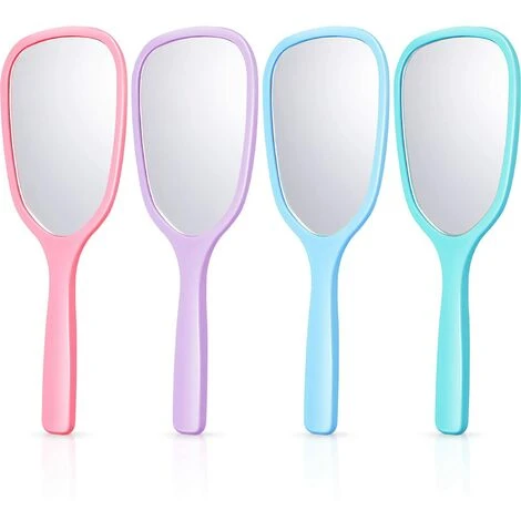 ABCRITAL 4 Pièces Miroir À Main Miroir De Maquillage Avec Poignée Miroir De Maquillage De Voyage Miroir Cosmétique De Poche Miroir De Vanité Portable Outil De Maquillage Pour Voyage, Camping, Maison, 7 Pouces De Long, 4 Couleurs