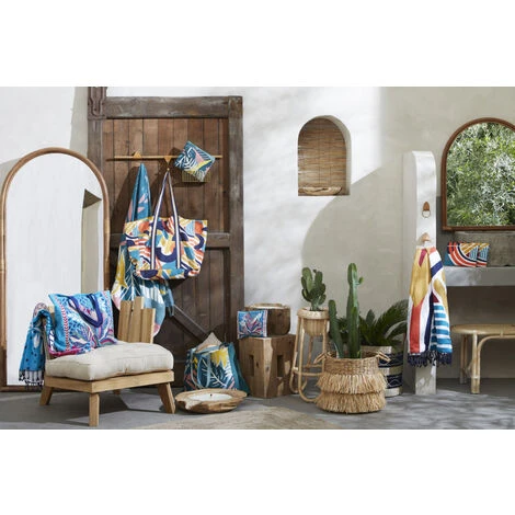 Ce joli miroir en paille est idéal pour une décoration bohème chic. Composez une création murale originale en ajoutant des miroirs de différents tailles.