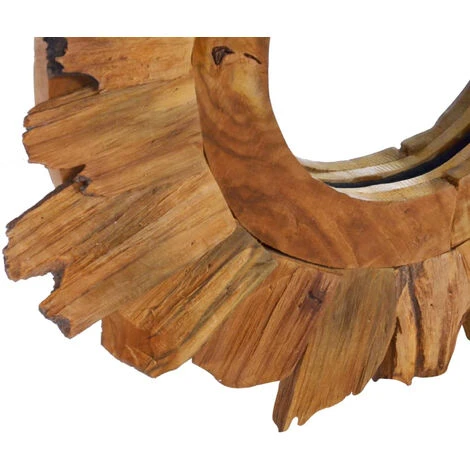 Notre miroir en teck est plus qu’un objet pratique quotidien; c’est aussi une décoration attrayante pour votre maison. Le cadre du miroir avec design à pétales est fabriqué à la main de bois de teck naturel, ce qui ajoute au style rustique du miroir. Il sera parfait dans n’importe quelle pièce de la maison et peut également être utilisé dans la salle de bain. Le miroir est prêt à être monté au mur grâce au crochet déjà installé sur la planche dorsale. Remarque importante : la couleur et le motif du bois peuvent varier d’une pièce à l’autre, rendant chaque pièce unique ; la livraison est aléatoire.