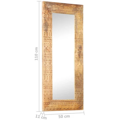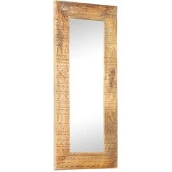 Ce miroir en bois sculpté à la main est plus qu’un objet pratique quotidien; c’est aussi une décoration attrayante pour votre maison. Ce miroir est fabriqué en bois de manguier massif, un bois dur tropical avec la force de soutenir le poids. Il résiste également à l’usure du temps, ce qui le rend robuste et durable. L’artisanat et les beaux grains de bois rendent chaque pièce unique et légèrement différente l’une de l’autre. De plus, le motif sculpté à la main ajoute à sa beauté. Remarque importante : les couleurs et les grains varient d’une pièce à l’autre, rendant chaque meuble unique ; La livraison est également aléatoire.