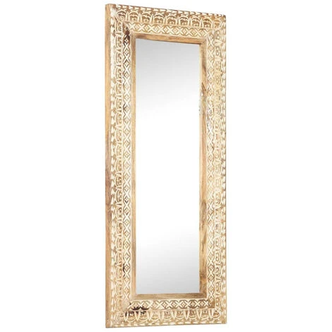 Ce miroir en bois sculpté à la main est plus qu’un objet pratique quotidien; c’est aussi une décoration attrayante pour votre maison. Ce miroir est fabriqué en bois de manguier massif, un bois dur tropical avec la force de soutenir le poids. Il résiste également à l’usure du temps, ce qui le rend robuste et durable. L’artisanat et les beaux grains de bois rendent chaque pièce unique et légèrement différente l’une de l’autre. De plus, le motif sculpté à la main ajoute à sa beauté. Remarque importante : les couleurs et les grains varient d’une pièce à l’autre, rendant chaque meuble unique ; La livraison est également aléatoire.