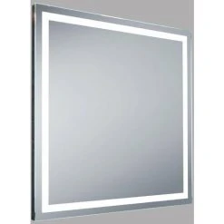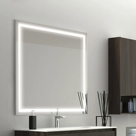 Miroir rectangulaire avec bande dépolie satiné. Eclairage Led integré sur les 4 cotées. Esthétique contemporaine qui s’ adapte parfaitement à tout éspace dans la maison et assure un éclairage optimal.