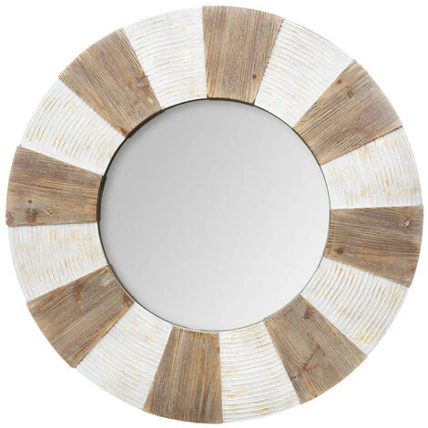 Atmosphera – Grand Miroir mural en Bois effet Vieilli avec Relief D 90 cm (-) Dimensions : D. 90 x H. 2,7 cm – – Matière du cadre : Bois de Sapin et Bois MDF –