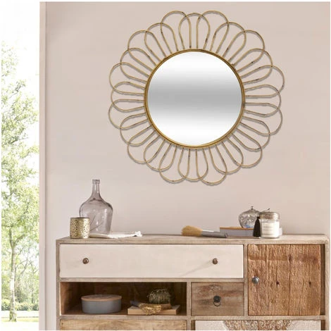Atmosphera – Grand Miroir mural en Métal aspect Rotin D 72 cm (-) Dimensions : D. 72 x Ep. 4,3 cm – Dimensions : Miroir : D. 38,5 cm – – Matière du cadre : Fer –