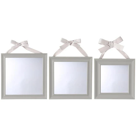 Atmosphera – Lot de 3 Miroirs muraux carrés avec ruban (-) Dimensions : S : L. 20 x l. 0,9 x H. 20 cm – – Dimensions : M : L. 27 x l. 0,9 x H. 27 cm – – Dimensions : L : L. 34 x l. 0,9 x H. 34 cm – – Matière : Verre, Bois MDF et Polyester – – Poids : 1.83 kg – (-) Modèle : Gris