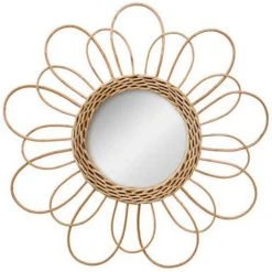 Rotin Mirror « Fleur » Ambiance.Donnez-lui une touche de fantaisie et de lumière à votre chambre avec ce miroir.Encadré en osier, ce miroir apporte l’originalité.Il combine le miroir avec des meubles plus en osier ou en rotin.Beige.Fabriqué dans des fibres de bois.Dimensions D. 38 x D. 2 cm.
