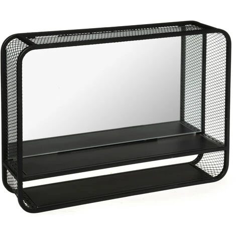Atmosphera – Miroir mural avec Ă©tagères en MĂ©tal Noir 55 x 40 cm (-)