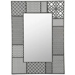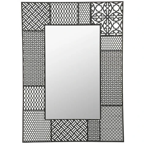 Miroir « teeco » atmosphère décorative.La mosaïque des décorations de fer donne à ce miroir une touche d’excentricité décidément contemporaine.Ses lignes propres, son format rectangulaire et sa couleur opportune s’intégreront à n’importe quel intérieur.Installez le miroir «Teeco» sur un métal confortable pour un design moderne et sophistiqué.Couleur noire.Fabriqué en fer.Dimensions 66 x 1,5 x 91,5 cm.