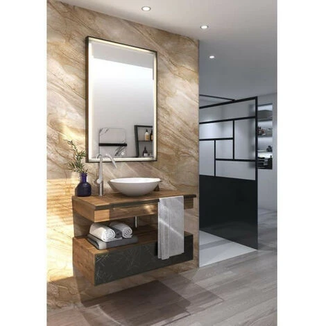 – 4 mm Eclairage led frontale périphérique, sablage horizontale, interrupteur tactile, anti buée, cadre périphérique, finition noire