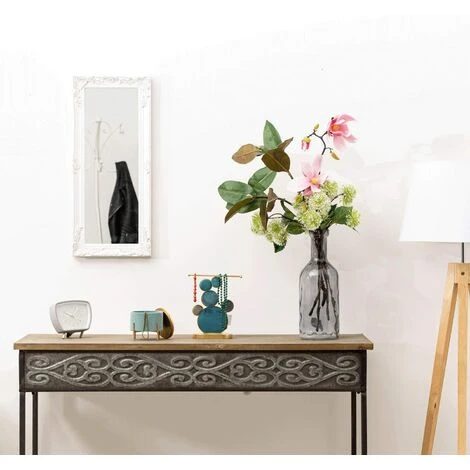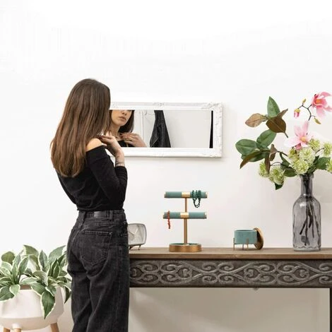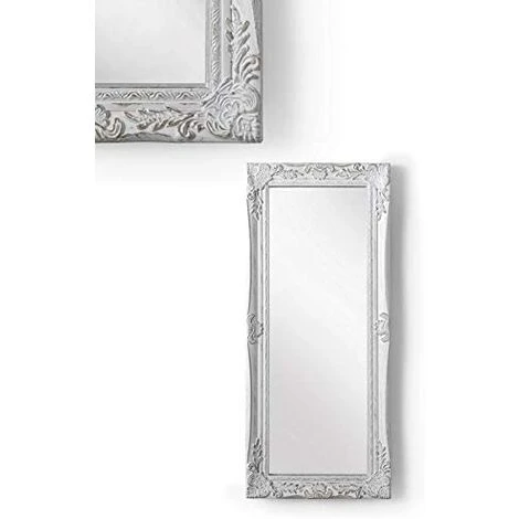 Baroni Home Miroir mural Ă domicile avec cadre rectangulaire en bois Blanc antique. Dans un style minable. Sur le dos a un crochet pour le suspendre. IdĂ©al pour l’amĂ©nagement de la maison, la chambre et la garde-robe. Taille: 28x3x65 cm