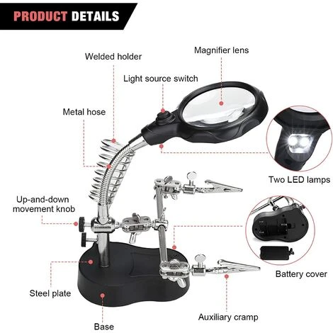 【Application】: Quand vous faites du travail Électronique, Réparation, Usinage, Cosmétologie, Manucure, Observer de Pores, Évalution et Scrupture, Réparation d’Horloger, Appareil, Lecture pour les Agées, etc.