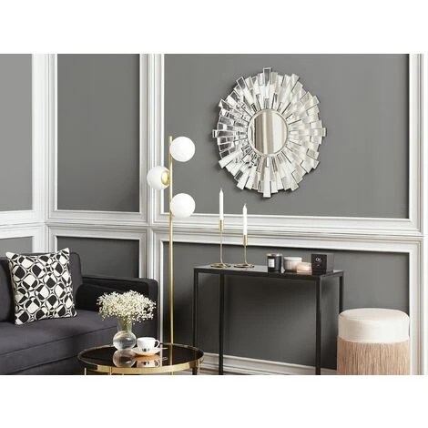 Miroir rond argenté élégant et rétro. La forme arrondie et harmonieuse du miroir est entourée d’un cadre décoré argenté. Sa surface réfléchissante rajoutera de la luminosité dans votre intérieur et apportera dans le même temps une énergie positive. À l’aide de 2 crochets, le miroir peut être monté au mur pour économiser un maximum d’espace. Ce dernier pourra s’adapter à tous types d’intérieurs grâce à son style élégant et rétro.