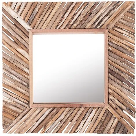 Miroir mural de forme carrée en bois clair. Avec son look naturel ce miroir mural carré ajoute une ambiance rustique à n’importe quel espace de vie bohème ou champêtre. Il présente un cadre épais unique, fabriqué à partir de bâtons de différentes longueurs et couleurs, qui crée une mosaïque accrocheuse. Ce miroir semble parfait en association avec d’autres meubles en bois.