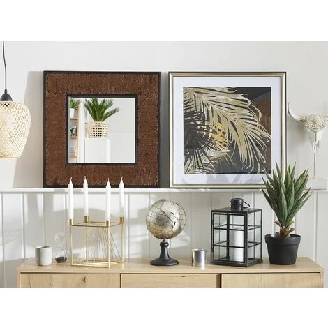 Miroir mural moderne 60 x 60 cm avec cadre en bois de teck. Avec ce miroir mural décoratif, n’importe quelle pièce gagne un peu d’ambiance rustique. Un cadre noir épais est rempli de milliers de morceaux de bois de teck irréguliers, créant une mosaïque unique et accrocheuse. Ce miroir a fière allure fixé au-dessus d’un lit ou d’une cheminée ou assorti d’autres meuble en bois en accompagnement de quelques fleurs dans n’importe quel intérieur boho ou industriel.