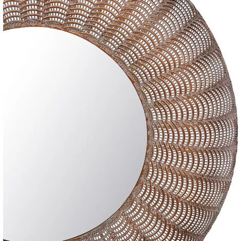 Miroir mural rond avec cadre en métal cuivré ajouré. Ce magnifique miroir rond sera une superbe décoration murale dans n’importe quel intérieur. Son cadre en métal cuivré ajouré lui confère un look élégant et glamour, idéal pour parfaire un décor moderne, oriental et chic. Accrochez-le au-dessus de votre canapé dans le salon ou au-dessus de votre lit dans votre chambre pour un effet wow assuré. Ce miroir mural agrandira visuellement votre espace de vie.