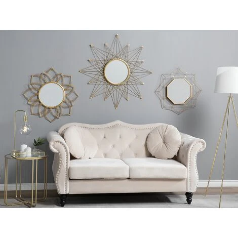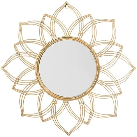 Miroir mural doré élégant en forme de fleur. Ce miroir en forme de fleur illumine immédiatement tous les intérieurs et, grâce à son cadre doré, lui donne une touche de glamour. Les flocons sont composés de trois fils, ce qui lui donne un aspect élégant et délicat. Le miroir convient parfaitement à tous les intérieurs modernes, scandinaves ou éclectiques. Il est idéal pour ceux qui aiment les formes ludiques et les accessoires romantiques !