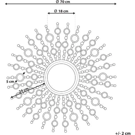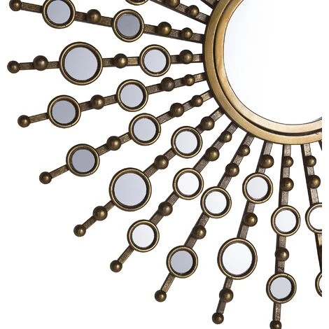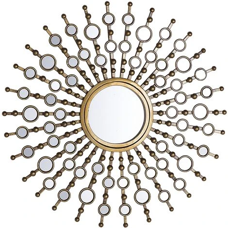 Miroir dorĂ© de forme solaire moderne. Ce miroir au cadre dorĂ© de forme solaire rĂ©chauffera votre intĂ©rieur grâce Ă la lumière qu’il pojette. Ce miroir solaire procure non seulement un effet particulièrement dĂ©coratif, mais il est Ă©galement totalement Ă la mode et ajoutera une touche de style Ă votre intĂ©rieur. Grâce Ă sa forme extraordinaire, il deviendra sans nul doute la pièce maĂ®tresse de votre salon.