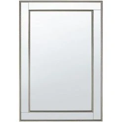 Miroir mural avec cadre en verre finition dorée et argentée. Ce miroir mural moderne rajoutera une touche d’élégance et de bien être et élargira l’espace visuel de votre intérieur. La bordure dorée moderne combiné avec un cadre en verre argenté rajoute une touche supplémentaire de classe à ce véritable bijou de design. Ce dernier peut également être accroché verticalement ou horizontalement selon vos besoins et envies. Complétez votre décoration avec cet accessoire d’une grande élégance dans votre salon ou votre chambre ! Ce miroir rectangulaire est protégé à l’arrière par du papier. Ceci n’est pas un élément d’emballage et ne doit en aucun cas être retiré.