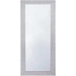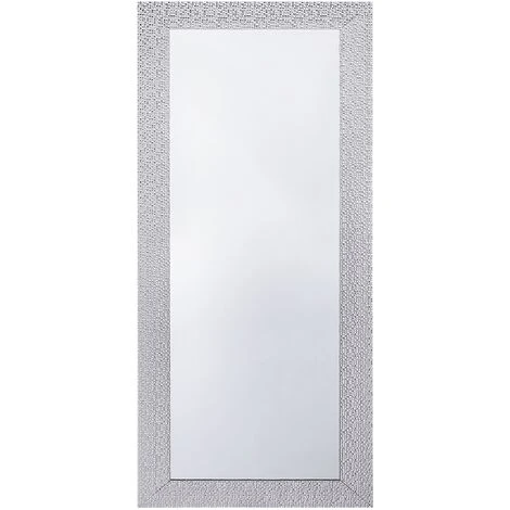 Miroir mural avec un cadre argenté moderne. Ce miroir mural moderne rajoutera une touche d’élégance et de bien être et élargira l’espace visuel de votre intérieur. Le cadre argenté à motifs modernes rajoute une touche supplémentaire de classe à ce véritable bijou de design. Ce dernier peut également être accroché verticalement ou horizontalement selon vos besoins et envies. Complétez votre décoration avec cet accessoire d’une grande élégance dans votre salon ou votre chambre ! Ce miroir est protégé à l’arrière par du papier. Ceci n’est pas un élément d’emballage et ne doit en aucun cas être retiré.