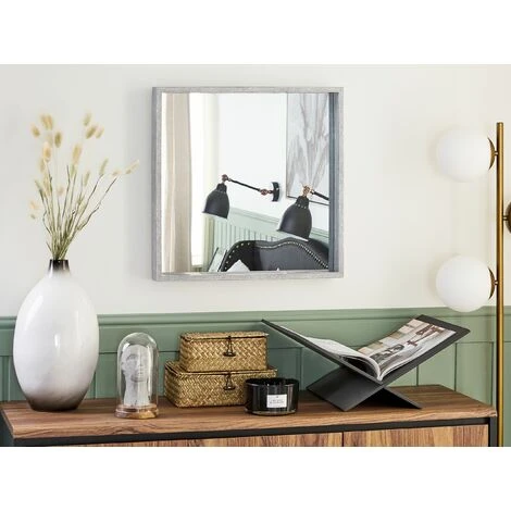 Miroir mural carré au style contemporain. Rehaussez le design de vos intérieurs avec ce magnifique miroir mural très décoratif. Doté d’un cadre carré et fabriqué à partir d’une matière synthétique écologique imitant le bois, il est un accessoire élégant très à la mode qui agrandira visuellement chaque pièce. Universel et pratique, il s’adapte facilement à de multiples usages ainsi qu’à la plupart des intérieurs et styles de décor.