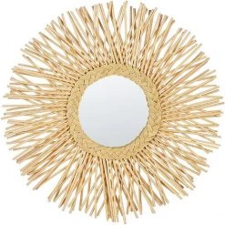 Miroir en rotin naturel tressé. Ajoutez une touche bohème à votre salon, votre chambre ou votre couloir avec ce magnifique miroir mural rond. Son cadre original en rotin en fait un véritable must-have pour un intérieur résolument moderne. Grâce à son crochet pratique, il est facile à suspendre.