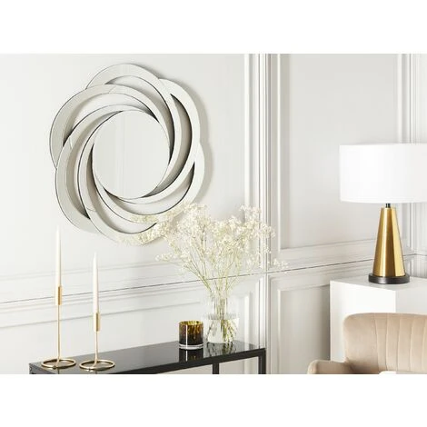 Miroir mural avec cadre glamour. Grâce à son style minimaliste, ce miroir mural s’intégrera parfaitement dans n’importe quelle pièce. Sa forme originale attire l’attention. Extrêmement durable, il est doté d’un cadre solide en MDF de haute qualité. Grâce aux crochets pratiques, il est facile à suspendre.