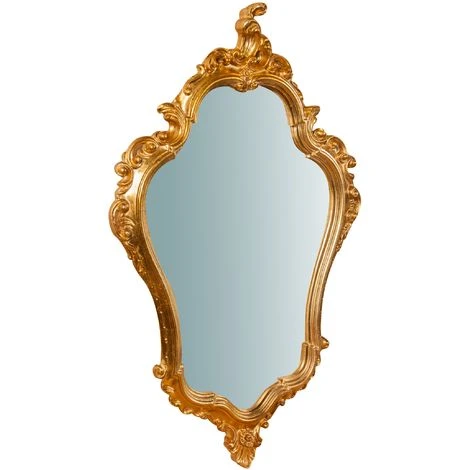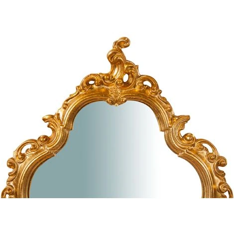 Miroir murale aux dimensions L57 xPR5 X H90 cm en bois finition feuille d’or antique. Soigneusement façonné et fini par vieux artisans florentins, il est idéal pour enrichir et décorer n’importe quel environnement. Déjà mise à la place pour l’affichage au mur soit horizontalement soit verticalement. Article entièrement realisé en Italie