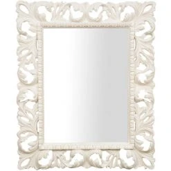 Miroir mural en bois avec une finition blanc antique. Dimensions : largeur 82 cm, épaisseur 6 cm, hauteur 101 cm. Miroir entièrement fabriqué en Italie, soigneusement travaillé et fini par d’anciens artisans florentins. Facilement applicable pour enrichir et décorer tout environnement. Déjà préparé avec des crochets pour le montage mural. Toutes les mesures se réfèrent à la taille maximale de l’article.
