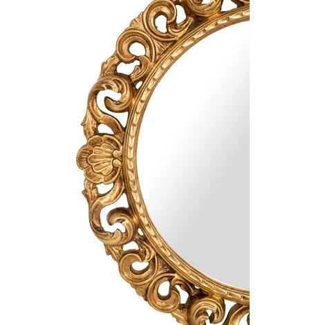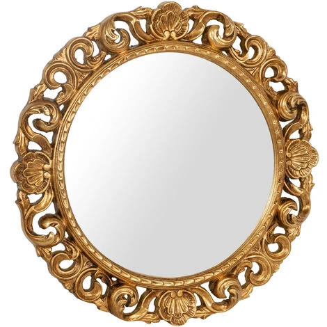 Miroir mural en bois avec finition feuille d’or vieilli. Dimensions : largeur 62 cm, épaisseur 5 cm, hauteur 62 cm. Miroir entièrement fabriqué en Italie, soigneusement travaillé et fini par d’anciens artisans florentins. Facilement applicable pour enrichir et décorer tout environnement. Déjà préparé avec des crochets pour le montage mural. Toutes les mesures se réfèrent à la taille maximale de l’article.