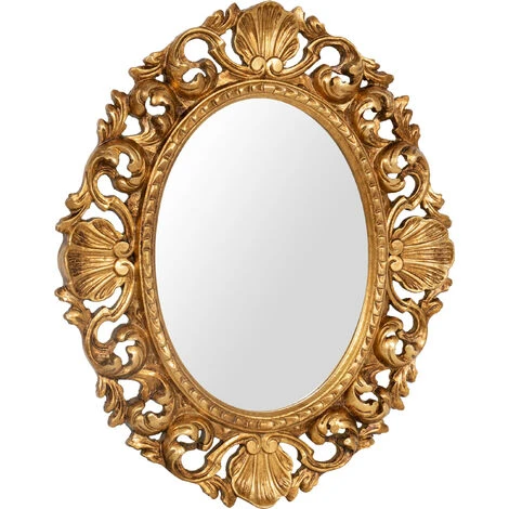 Miroir mural en bois avec finition feuille d’or vieilli. Dimensions : largeur 50 cm, épaisseur 4 cm, hauteur 60 cm. Miroir entièrement fabriqué en Italie, soigneusement travaillé et fini par d’anciens artisans florentins. Facilement applicable pour enrichir et décorer tout environnement. Déjà préparé avec des crochets pour le montage mural. Toutes les mesures se réfèrent à la taille maximale de l’article.