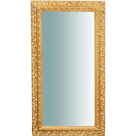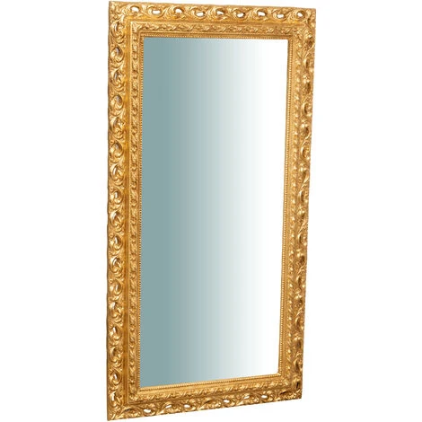 Miroir mural de dimensions longueur 70 cm, profondeur 5 cm, hauteur 129 cm en bois avec finition antique à la feuille d’or. Soigneusement travaillé et fini par de vieux artisans florentins. Facilement applicable pour enrichir et décorer n’importe quel environnement. Déjà préparé avec des crochets pour une fixation horizontale ou verticale au mur. Article entièrement réalisé en Italie.Toutes les mesures se r´fèrent à la taille maximale de l’article