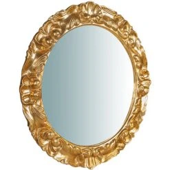 Miroir murale de dimensions L54XPR4, 5XH54cm en bois finition feuille d’or antique. Soigneusement travaillé et terminé par de vieux artisans florentins. Facilement applicable pour enrichir et décorer n’importe quel environnement. Déjà équipé de crochets pour fixer au mur horizontalement ou verticalement. Article entièrement fabriqué en Italie
