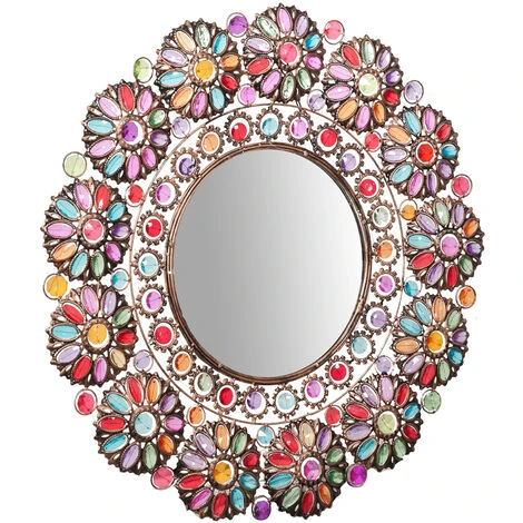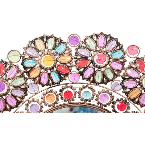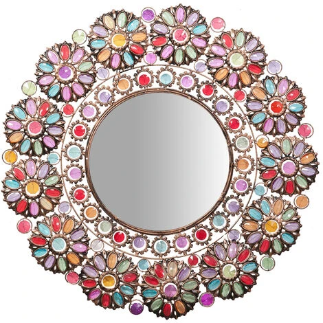 Miroir mural avec cadre diamètre de 73 cm. Fait de mĂ©tal avec des pierres prĂ©cieuses colorĂ©es, il est un accessoire pratique et esthĂ©tique, idĂ©al pour n’importe quel environnementToutes les mesures se r´fèrent Ă la taille maximale de l’article