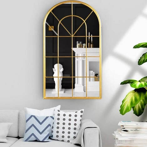 Miroir Mural 110x56cm Décoratif Salon Verrière Miroir Avec Cadre en Métal pour Salon, Chambre