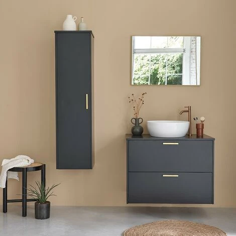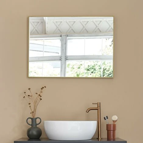 Apportez de l’originalité et du contraste à votre salle de bain avec ce miroir rectangulaire en métal doré, que vous pourrez accrocher au-dessus d’un meuble vasque.
