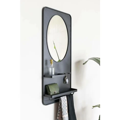 Miroir décoratif avec rangements étagères, porte-clefs et tringle