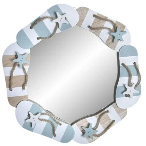 Vous voulez donner une touche d’originalité à votre maison ? Vous y arriverez grâce au Miroir mural DKD Home Decor Naturel Bleu Bois Blanc Tongs méditerranéen (34 x 3 x 35 cm).