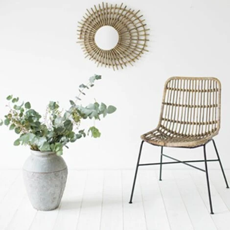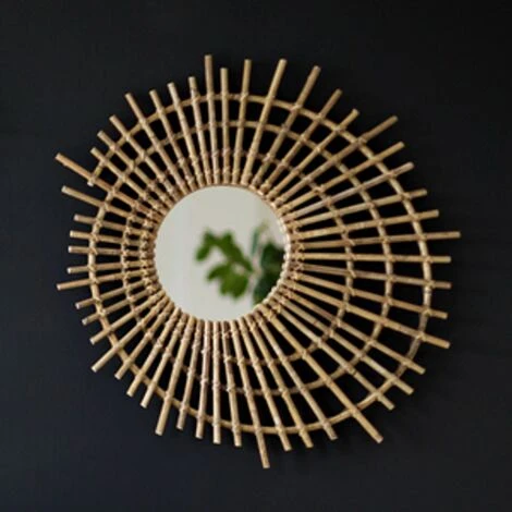 Donnez une touche à la fois naturel et rétro dans votre déco, avec ce miroir en rotin. Il porte bien son nom éclipse, avec sa forme qui fait penser à un soleil en mouvement. Idéal dans une entrée, une chambre, ou même une salle de bain. Ce miroir en rotin au look vintage fait partie de la collection Moka signée Casatera. Découvrez les autres formes de miroirs en rotin de cette collection Moka.