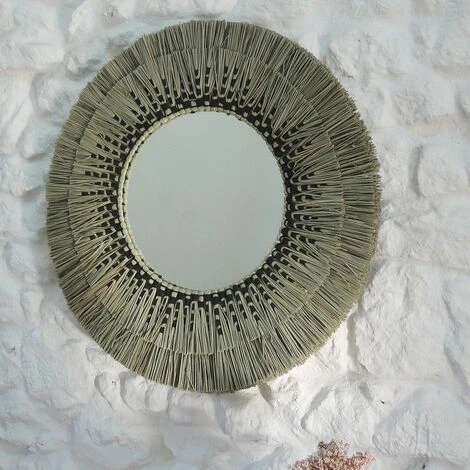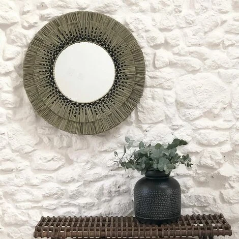 Un style à la fois bohème et ethnique s’invitera dans votre déco avec ce miroir en paille de mendong signé Casatera. Sur une base de teinte naturelle, un motif noir vient s’ajouter toute en douceur, proposant un joli détail. La paille de ce miroir est rigide et lui donne une belle tenue. Ce miroir rond en paille est proposé en 2 tailles, n’hésitez pas à les cumuler pour un bel effet de volume sur un mur.