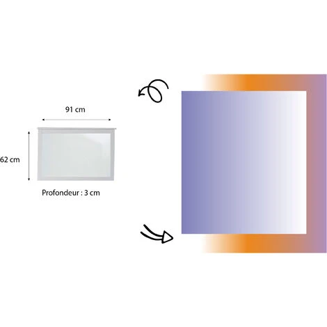Miroir Mural en mélaminé couleur blanc. L-H-P: 91 – 62 – 3 cm