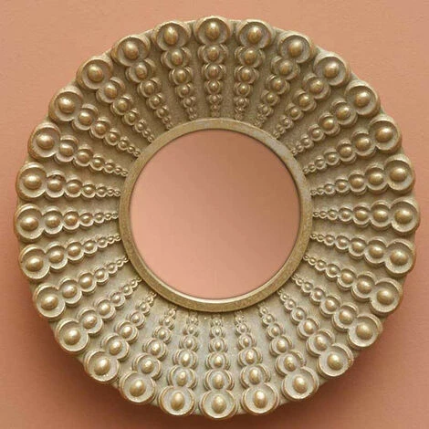 Magnifique miroir à dorures style antique, succombez au charme de ce superbe miroir en résine. Sa forme ronde et ses détails doré vous feront fondre ! Le contour proche de la glace est patiné de doré afin de parfaire son ornement. Admirez-vous dans ce beau miroir ou admirez votre décoration intérieure !