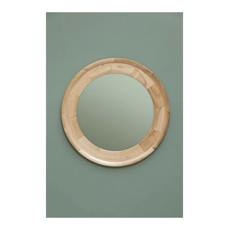Miroir mural rond en bois clair. Un élément très décoratif.