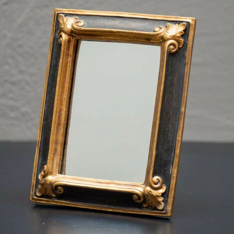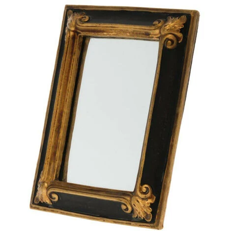 DĂ©couvrez ce joli petit miroir rectangulaire noir et dorĂ© en rĂ©sine ! Grâce Ă sa glace de qualitĂ© et ses minutieuses finitions de style baroque, il deviendra rapidement un Ă©lĂ©ment incontournable de votre dĂ©coration d’intĂ©rieur !