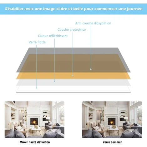 - 【Qualité et sécurité:】le cadre en fer épais, moderne et sobre s’insère dans votre intérieur. Le miroir s’utilise en toute sécurité et ne se déformera pas, assurant une longue durée d’utilisation. Le verre est doté d’une membrane anti-éclat sur l’arrière : il ne se dispersera pas en cas de bris ou d’impact. Il sera sans danger pour votre famille.