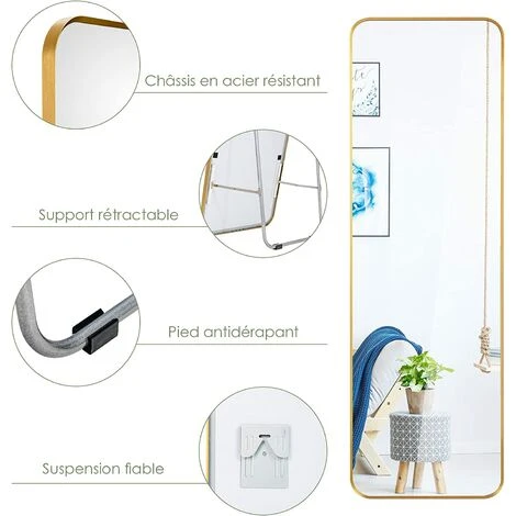 - 【Miroir posé au sol et miroir mural】ce miroir pleine longueur a 2 façons d’être utilisé, y compris debout sur le sol et accroché au mur. En tant que miroir posé, vous pouvez placer le miroir pleine longueur sur le sol, en utilisant le support rétractable pour créer une structure triangulaire stable. De plus, vous pouvez fixer le miroir pleine longueur au mur pour gagner de la place.