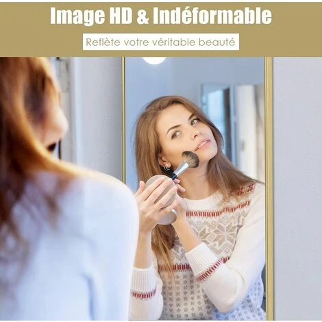 - ăUtilisable partout : ăcomme le miroir intĂ©gral est fonctionnel et magnifique, il est largement utilisable dans diffĂ©rentes piĂšces, telles que la chambre, le vestiaire, le salon ou l’entrĂ©e. Par consĂ©quent, vous pouvez avoir un aperçu de votre robe avant de sortir pour un rendez-vous, ou admirer votre maquillage et vos bijoux en toute simplicitĂ©.