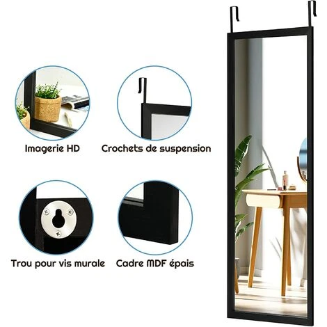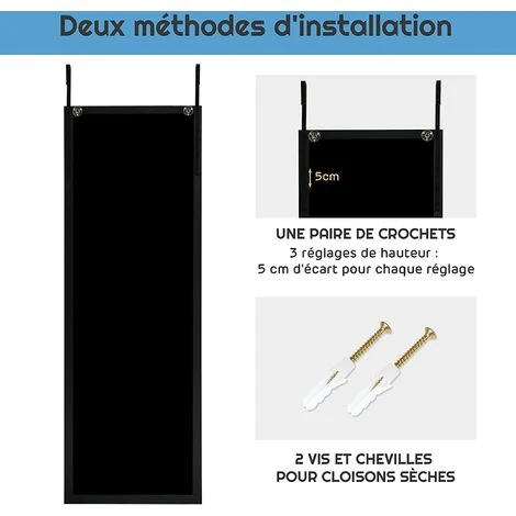 - 【Design peu encombrant :】Vous pouvez accrocher ce miroir grand format au-dessus de la porte avec les crochets dont la hauteur est réglable sur 3 niveaux. Vous pouvez également le fixer au mur avec les vis fournies pour optimiser l’espace, sans encombrer le sol.