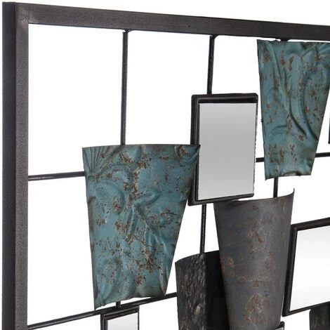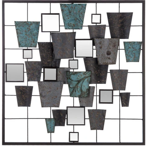 Sur cette déco murale « Miroir » métal, les motifs stylisés sont découpés dans de fines feuilles de métal ajouré et rehaussés de pièces en relief. Pour une harmonie parfaite, le cadre carré utilise votre mur comme toile de fond.