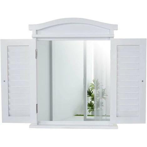 DéCOSHOP26 Miroir Mural Design Fenêtre Avec Volets 53x42x5cm Bois De Paulownia Massif Et MDF Blanc – Blante